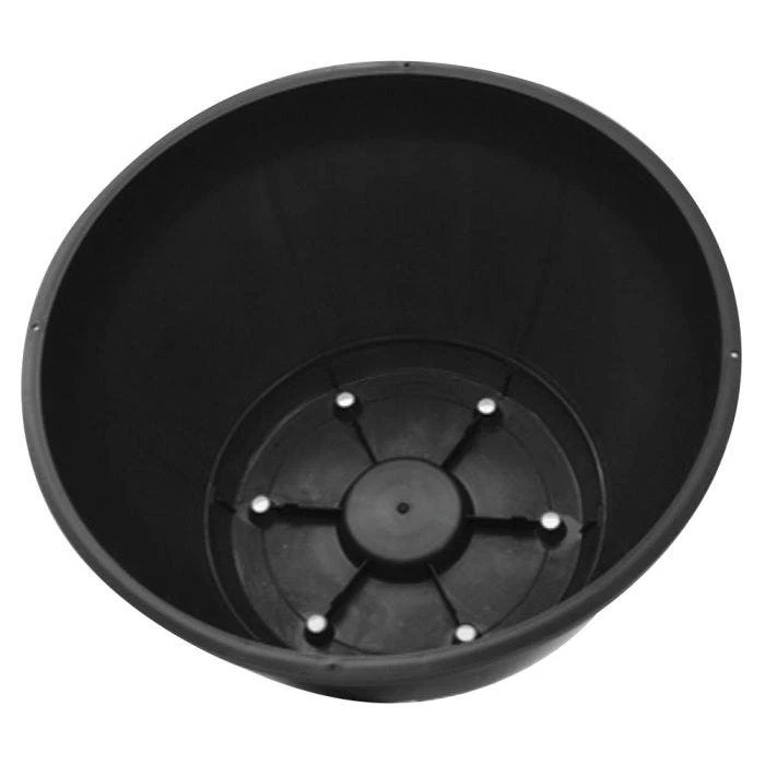 Belden Plastics manufactures their 14-Inch Saucerless Hanging Baskets using 100% recycled materials. These injection-molded black plastic containers measure 14 inches in diameter and 8-1/2 inches in height. Each case contains 25 baskets and 25 heavy gauge 2-wire, 4-strand hangers.