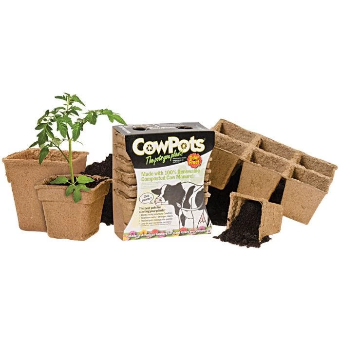 CowPots are not only a biodegradable, plantable replacement for plastic pots, but have additional benefits as well. CowPots last in a greenhouse setting for up to 12 weeks. Roots easily penetrate the walls of the pot, eliminating transplant shock, and they rapidly breakdown after transplanting providing the goodness of manure to the garden. With no plastic to clean up or dispose of, transplanting is quick and convenient.
