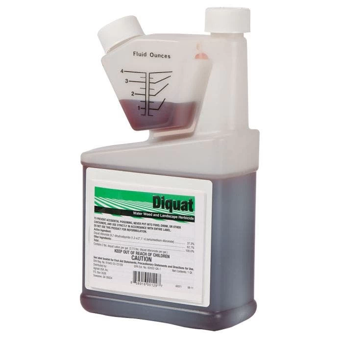 Diquat Herbicide provides excellent weed control for aquatic and non-crop areas, killing most submerged aquatic weeds. It is EPA-labeled for most landscape, nursery ornamental, aquatic, and non-crop uses. Its low use rate makes it an economical option for weed control.