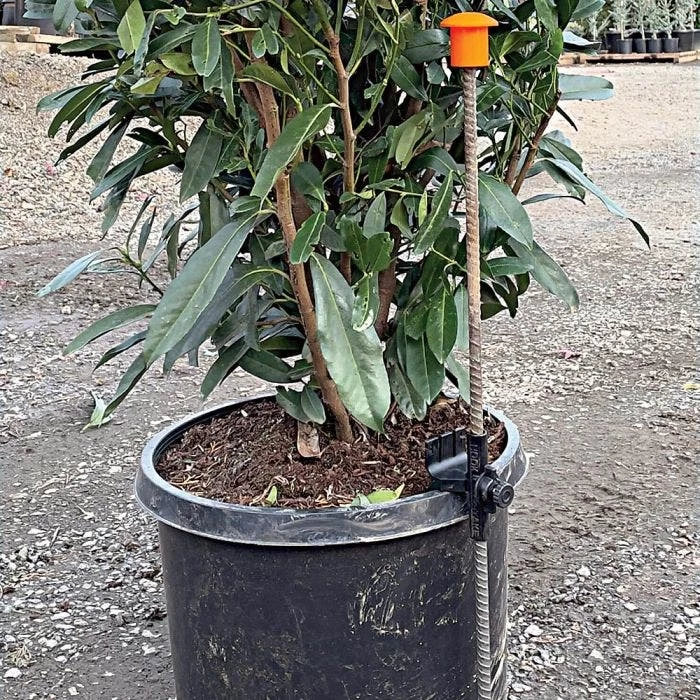 The HookStake can adjust to fit pot sizes from 1 gallon to 50 gallons, ensuring that different sizes of potted plants can be easily and securely managed.