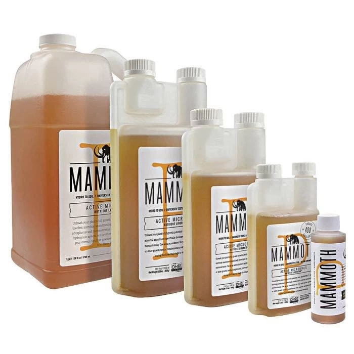Growcentia developed MAMMOTH P as a supplement to regular fertilizer programs. Its nearly-neutral pH level allows it to work well with nearly any fertilizer. This product contains organically-derived microbes. It is the first inoculant of its kind that maximizes phosphorus and nutrient cycling during the bloom phase. MAMMOTH P maximizes growth, increases yields, and enhances the overall health of the plant. The beneficial bacteria in MAMMOTH P act as micro bioreactors. They continually produce enzymes that release nutrients into the plant. These bacteria also shield the plant rhizosphere by outcompeting harmful pathogenic microbes. MAMMOTH P reduces the need for a separate enzyme program. It works equally well in soil, soilless, or recirculating hydroponic systems. Application during clone and vegetative phases boost its overall effectiveness. Growcentia founders developed MAMMOTH P at a leading U.S. university. They produce it at their facility in Fort Collins, Colorado to maintain their high standards for quality. Many competitors use a non-direct approach in which they simply mix microbes. This process creates a microbial concoction of unknown origin. Growcentia utilizes a directed microbial phenotyping platform. This platform, coupled with cutting-edge molecular techniques, results in a highly-effective formula. Tests performed by both growers and independent labs prove that MAMMOTH P increases plant growth. Try it today and see the results for yourself! Shake bottle well before each use. Mix with water according to the application rate table on the label. For best results, use within six months of purchase. Choose your desired size below.