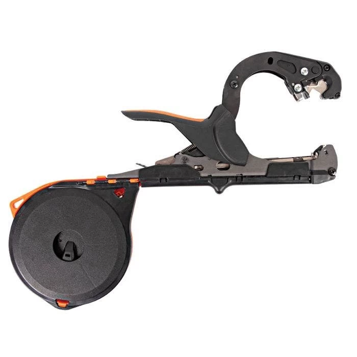 Lighter in weight with 50% less handing effort allows for more work to be done. A larger jaw enables the HT-R45L to bind up to 45 mm with a built in stapler pusher that causes no risk to lose it in the field. Reinforced hingle in the tape magazine can save you time to refill a tape. A jam clearing stick is also built into the tying machine to clear any jams that may occur when in use. Tie ribbon, staples, and spare blades sold separately.