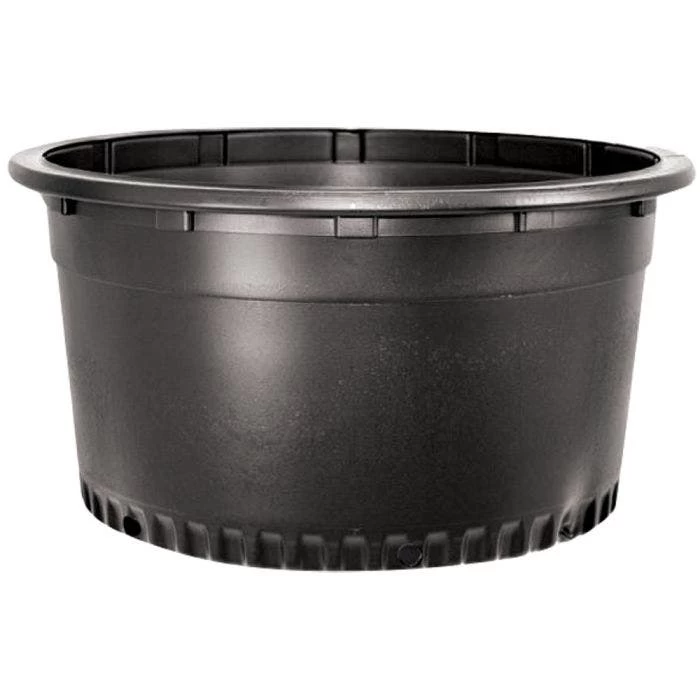 Grip Lip containers by Nursery Supplies save you labor by stacking and lifting easily and being tough enough to stand up to mechanical processes. Designed to provide maximum stacking and shipping strength. They ease the strain of maneuvering plants and trees because the lip becomes a rigid handle. Comfortable to lift, yet strong enough to be carried by a forklift. Since the lip is hollow inside, the Grip-Lip “cushions” the hand, making for more comfortable lifting. Available in a variety of sizes. Black in color.