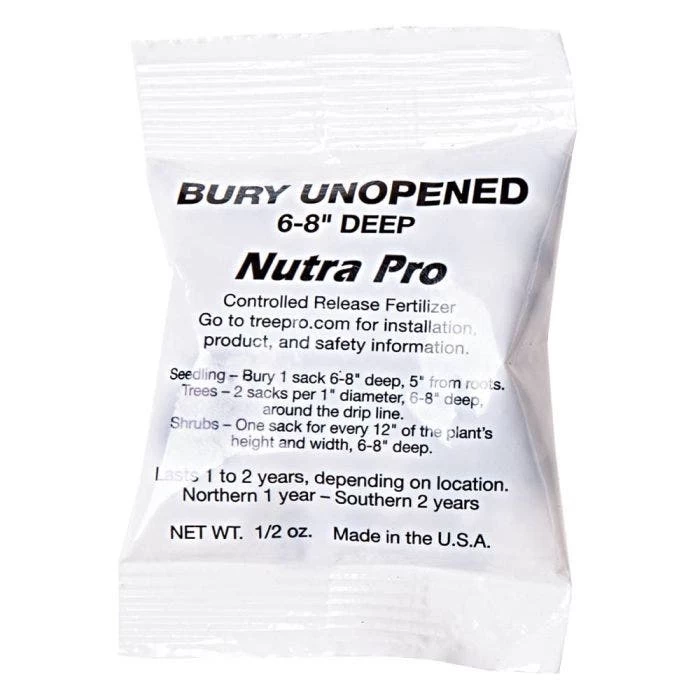 Nutra Pro takes the guesswork out of feeding your plants. To use, bury two packets per inch of tree diameter. For maximum efficiency, evenly space the packs throughout the root zone.