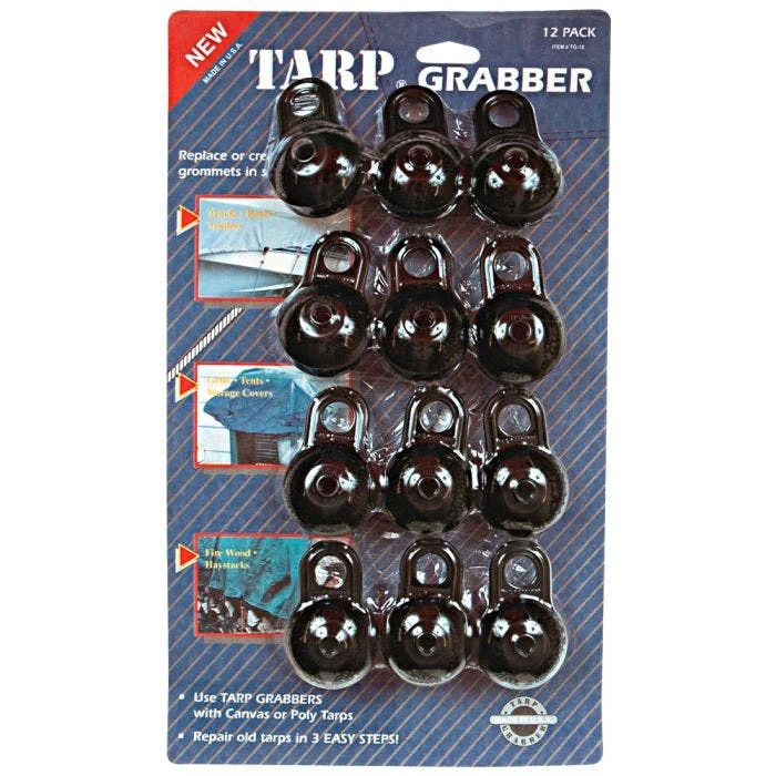 Make your own covers, banners, tents and more with these Tarp Grabber hard plastic grommets. Made from virtually indestructible recycled polymers. Use a hammer or pliers to tap permanently together. Pack of 12.