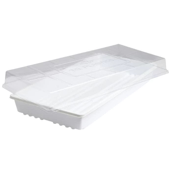 The Tray and Humidity Dome Pack features a traditional sized thermoformed tray and a 2″ heavy-duty plastic humidity dome. This pack comes with 5 trays per case.