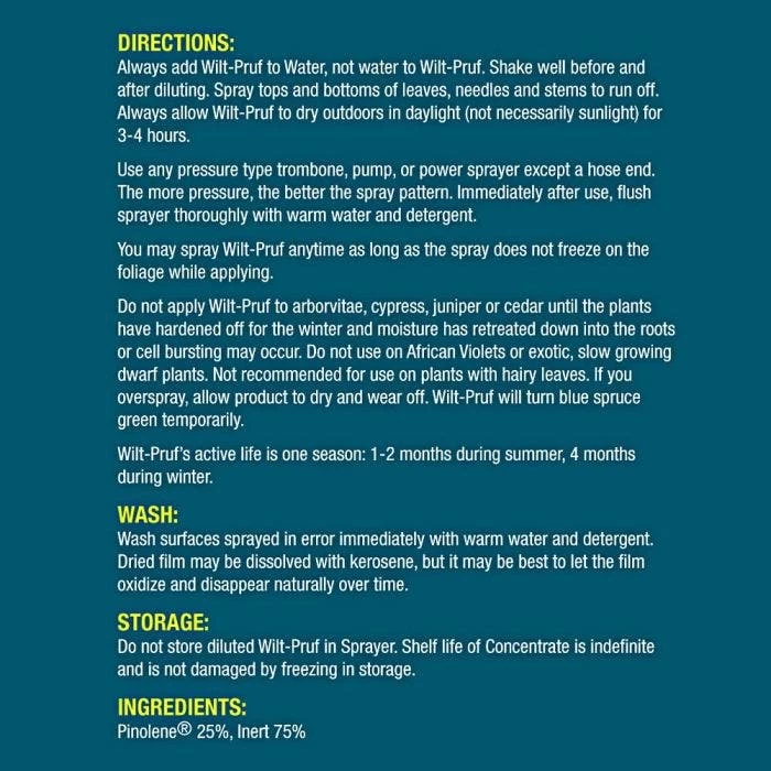 - Wilt-Pruf Anti-Transpirant Plant Protection 1 Quart Concentrate